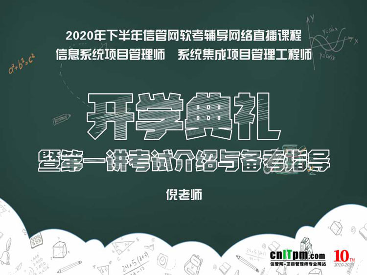 JRS直播2020年下半年信息系统项目管理师直播课程“2020年开学典礼暨备考指导 ”将于本周四(2020年7月2日)晚上19:30开始,直播时长120分钟,请各位培训学员注意安排好时间,按时听课。