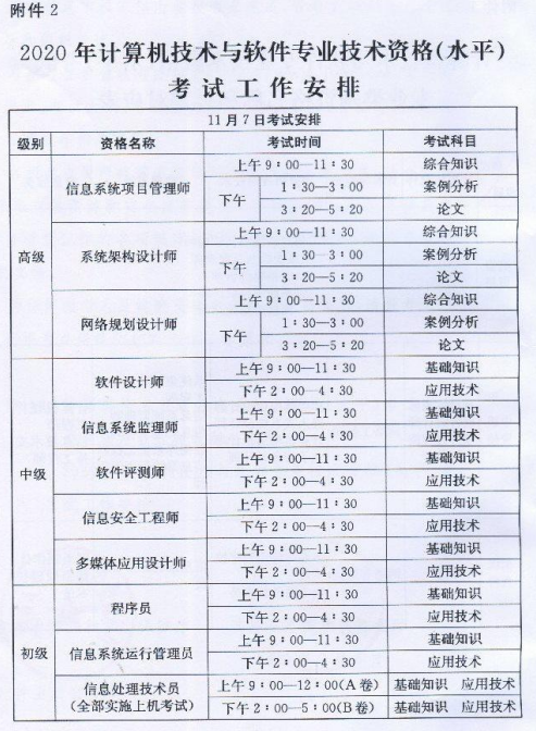 2.2020年计算机技术与软件专业技术资格(水平)考试工作安排