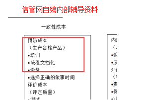 质量成本指在产品生命周期中发生的所有成本,包括为预防不符合要求、为评价产品或服务是否符合要求,以及因未达到要求而发生的所有成本。其中培训属于预防成本。
