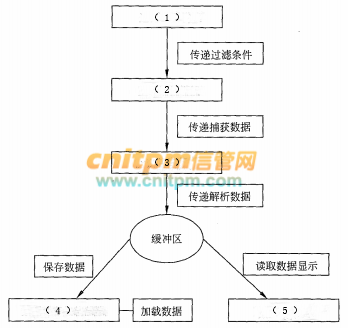 (1)过滤设置模块(2)监听捕获模块(3)协议解析模块(4)数据保存加载模块(5)数据显示模块