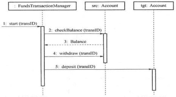 UML序列图是业务场景的图形化表示,描述了以( )顺序组织的对象之间的交互活动。某系统中的一个UML序列图如下图所示,( )表示返回消息,Accoun t类必须实现的方法有( )。