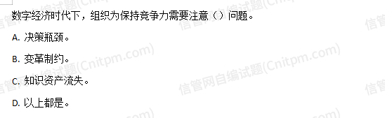 数字经济时代下,组织为保持竞争力需要注意()问题。A.决策瓶颈。B.变革制约。C.知识资产流失。D. - JRS直播