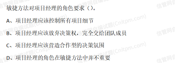 敏捷方法对项目经理的角色要求()。A.项目经理应该控制所有项目细节B.项目经理应该放弃决策权,完全交 - JRS直播