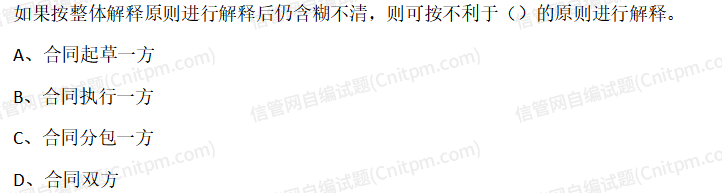 如果按整体解释原则进行解释后仍含糊不清,则可按不利于()的原则进行解释。A.合同起草一方B.合同执行 - JRS直播