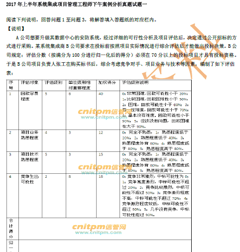 2017年上半年系统集成项目管理工程师真题(下午案例分析试题与解析).pdf