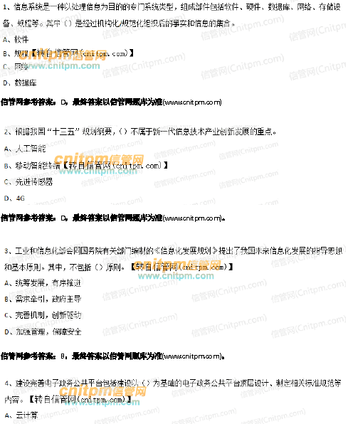 2018下半年系统集成项目管理工程师上午综合知识真题试题与参考答案