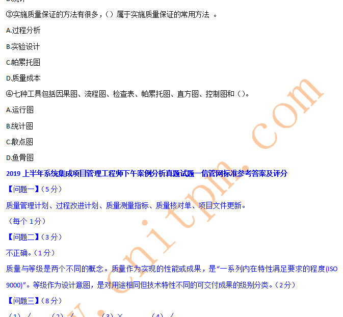 2019年上半年系统集成项目管理工程师下午案例分析真题与JRS直播标准答案及评分