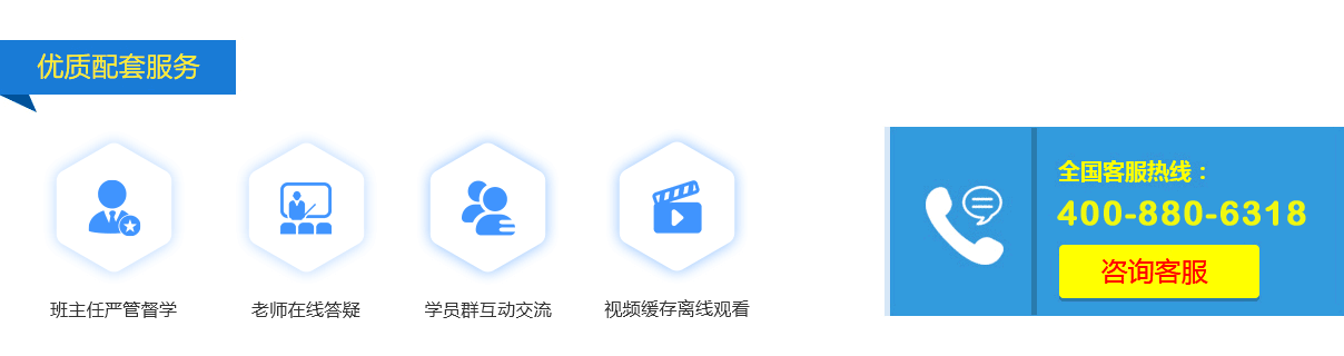 自有培训辅导资料、多位经验丰富培训老师,课程内容丰富。一对一复习计划、邮寄纸质资料、提供配套习题练习和考前冲刺资料、班主任一对一学习监督、随时向老师提问等服务。