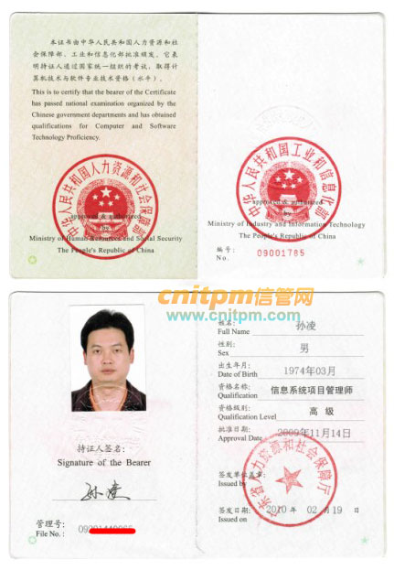 广东信息系统项目管理师证书样本
