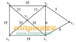 某地区的通信线路图如下图所示,假设其中标注的数字代表通信线路的长度(单位为千米),至少要假设()长的线路,才能保持6个城市的通信连通。