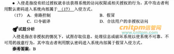 入侵是指没有经过授权就非法获得系统的访问权限或相关授权的行为,其中攻击者利用默认密码进入系统内部属于()入侵方式