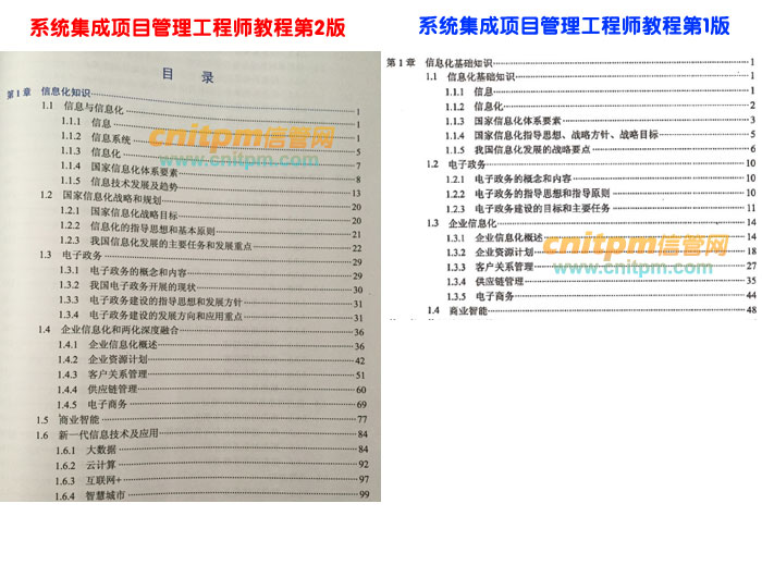 系统集成项目管理工程师第2版第1章与老版教材对比,修改内容较多,由原先4个章节增加为6个章节,“国家信息化战略和规划”单独拿出来作为一个大类知识点,增加了“新一代信息技术及应用”知识点。