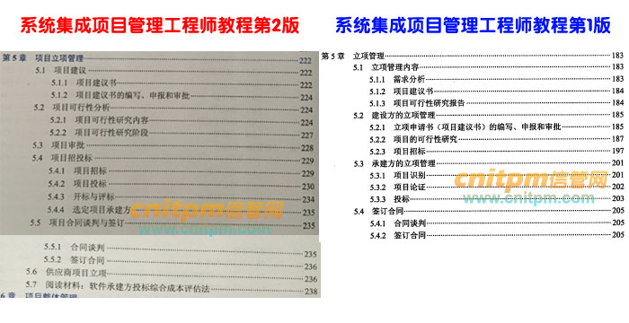 系统集成项目管理工程师第2版第5章与老版教材对比,修改较大,由原先4个章节增加为7个章节,并且对原先知识点名称都有较大修改。