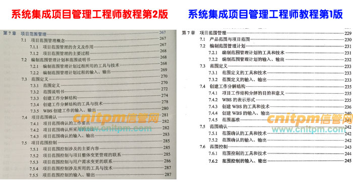 系统集成项目管理工程师第2版第7章与老版教材对比,修改不是很大,基本还是以范围管理过程作为章节。