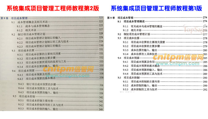 系统集成项目管理工程师第2版第9章与老版教材对比,章节修改不是很大,基本还是以成本管理过程作为章节,但是里面内容有一定修改。
