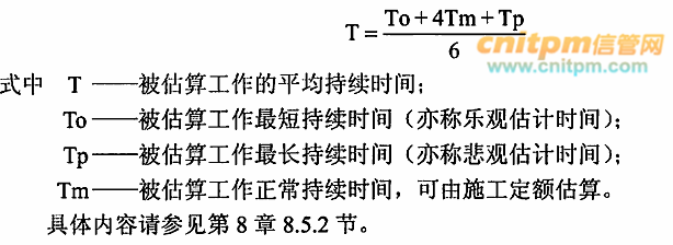 在绘制网络图时必须将非肯定型转化为肯定型,把三时估计变为单一时间估计,其计算公式为: