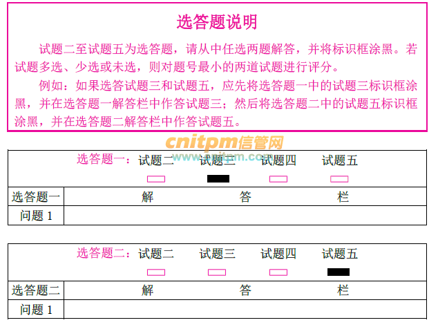 JRS直播通知:根据软考办最新的通知,信息系统项目管理师考试(系统集成项目管理工程师等也一样)下午案例分析科目的考试可能会出现选答题,也就是不像原先一样指定只出3道案例分析题,而是可能会有很多道题,然后你选择其中的几道进行解答。根据通知: