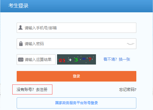 二、点击考生登录界面左下角“没有账号?去注册”;