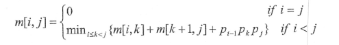 其中,Ai的维度为pi-1*pim[i,j]表示AiAi+1……Aj最优计算顺序的相乘次数。