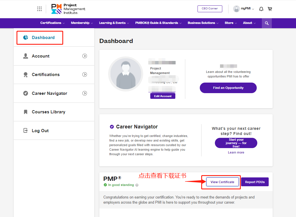 1、通过 www.pmi.org, 填写用户名和密码登陆