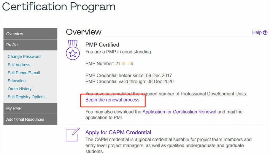 按照持续认证要求(CCR),积累一定数量的PDU(60个)登录在线CCR系统,申报PDU,申报完成60个PDU后,进行缴费