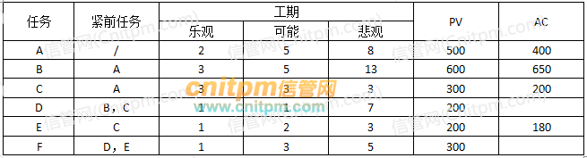 到第13天晚上,项目经理检查了项目的进展情况和经费使用情况,发现A、B、C三项活动均已完工,D任务明天可以开工,E任务完成了一半,F尚未开工。