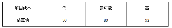 某项目成本估算区间如图所示(单位:万元),则在84 万元内完成项目的可能性为:()。