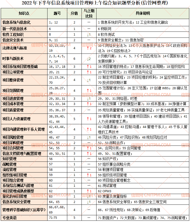2022年下半年信息系统项目管理师真题题型分析