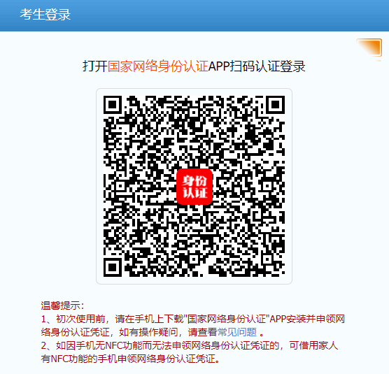 ⑤登录报名系统(需先在国家网络身份认证APP进行实名验证)
