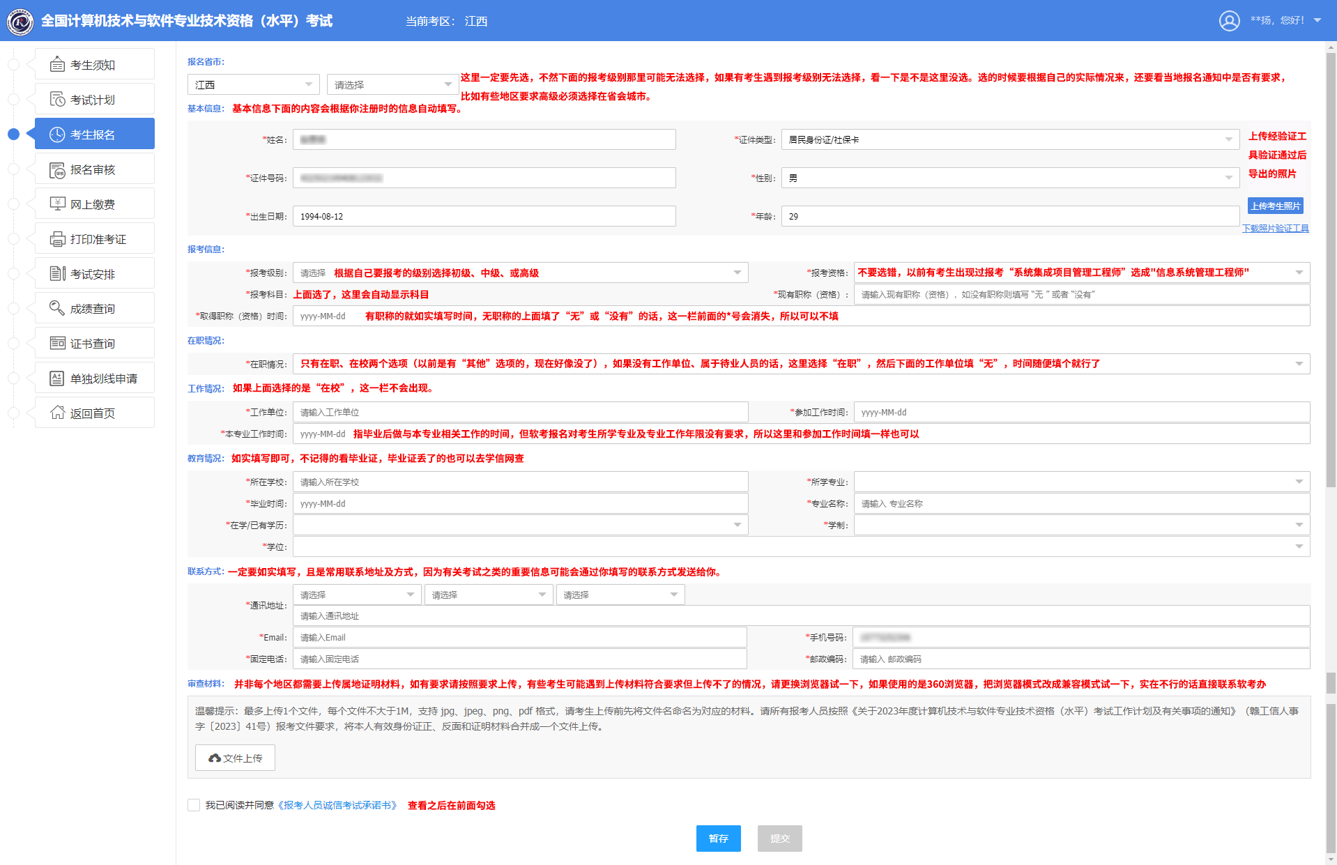 ⑧填写报名信息、上传报名照片、上传证明材料(并非所有地区都需要上传证明材料)【点击查看报名信息填写图文说明】