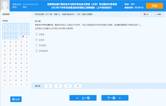 温馨提示:由于软考办没有发布正式的计算机化考试系统,JRS直播模拟作答系统仅供参考,与实际考试系统可能有所差别。