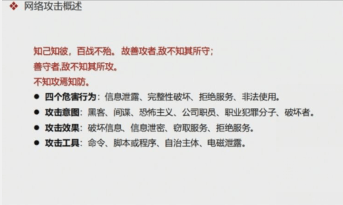现在很多的黑客也就是为了利益啊,去比如说一些收费的攻击。之前我说过的话,比如从事黑产的一些黑客,那么他可能在别人一些客户给他付费以后,他可以通过d dos攻击啊这个去对我们的目标系统进行攻击啊。第二个是间谍,间谍呢不用说他可能为了他不为了窃取一些机密的信息啊,或者说一些秘密的信息。第二个是第三个是恐怖主义。