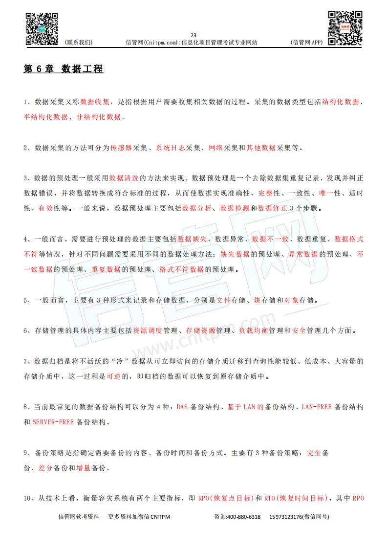 以下是由JRS直播整理的系统集成项目管理工程师第3版教程考点默写本《第6章-数据工程》的参考答案,供广大考生进行查看: