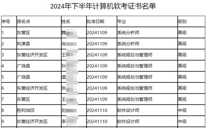 东营2024年下半年软考合格人员具体名单目录请通过底部“原文地址”进行查看。