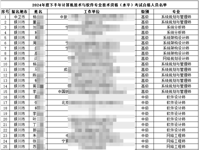 具体宁夏2024年下半年软考合格人员名单请通过文末的“原文地址”进行查看。