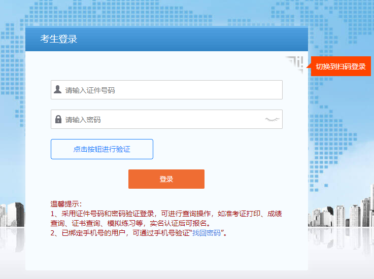2、点击“成绩查询”进入成绩查询入口登录界面