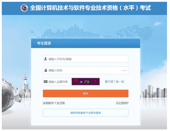 1.考生登录全国计算机技术与软件专业技术资格(水平)考试网上报名平台。