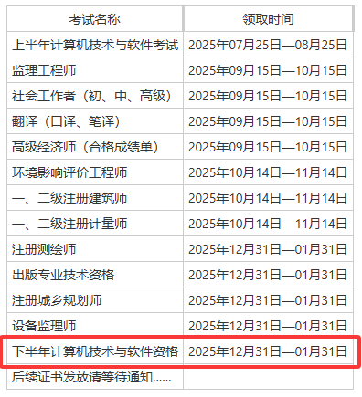 2025年度专业技术人员职业资格考试合格证书领取通知(2025年12月31日更新)