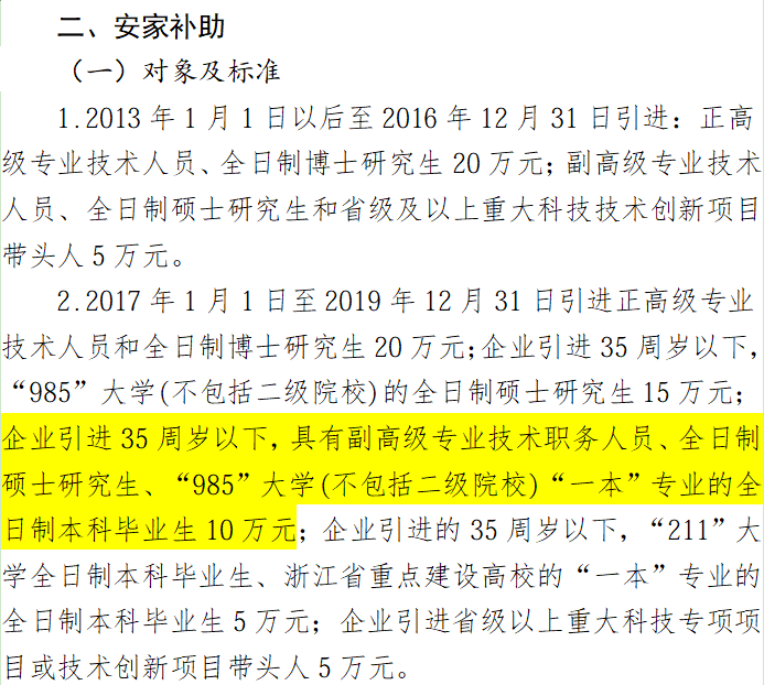 企业引进35周岁以下,具有副高级专业技术职务人员补助10万元。