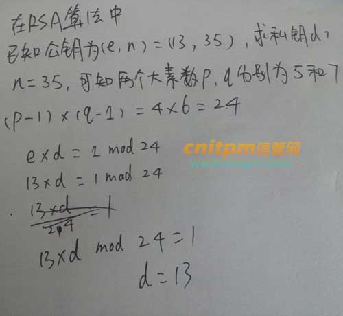 设在RSA的公钥密码体制中,公钥为(c,n)=(13,35),则私钥为()
