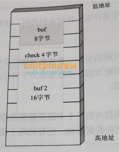 画出buf,check,buf2 三个变量在内存的布局图。