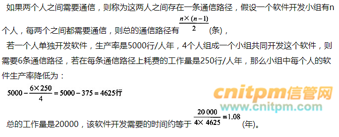 某软件的工作量是20000行,由4人组成的开发小组开发,每个程序员的生成效率是5000行/人月,每队程序员的沟通成本是250/行月,则该软件需要开发( )月。