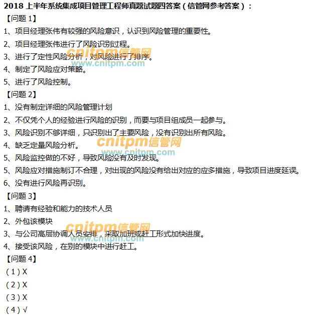 2018上半年系统集成项目管理工程师真题试题四及答案(JRS直播版)