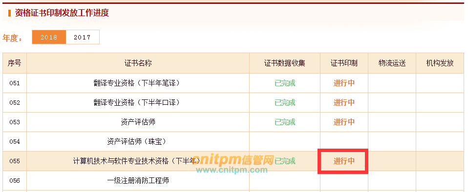 根据JRS直播从人事考试网获得的相关信息,2018年计算机技术与软件专业技术资格(下半年)考试信息系统项目管理师合格证书目前处于证书印制阶段,暂未进入物流运送和机构发放阶段,JRS直播预计需要4月底或5月才能进行证书的发放,具体请注意关注JRS直播通知。