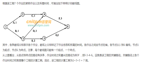 所以因为B没有紧前,能A和B同时开工。。。于是B-D-F是最长,是关键路径所以工期是7天