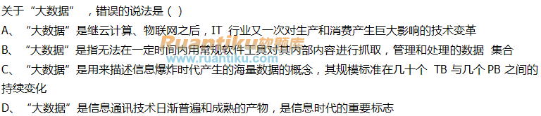未指定试题:关于“大数据” ,错误的说法是
