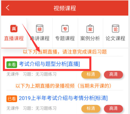 最新版安卓app是进入我的页面,然后进入视频课程频道,进入视频课程后,点击直播课程相应知识点进入直播页面。