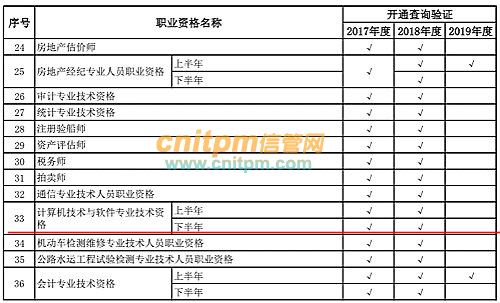 根据中国人事考试网的相关通知,目前中国人事考试网职业资格证书查询验证范围里,计算机技术与软件专业技术资格考试(比如高级信息系统项目管理师、系统规划与管理师、中级系统集成项目管理工程师、信息安全工程师等)已开通2017年上半年和下半年,2018年上半年和下半年的证书查询验证服务,其他年份取得证书暂时无法在中国人事考试网查询到。
