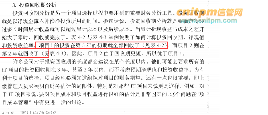 那为什么项目1不是第四年回收的,说是第五年初。项目2是不是可以说是第三年初?