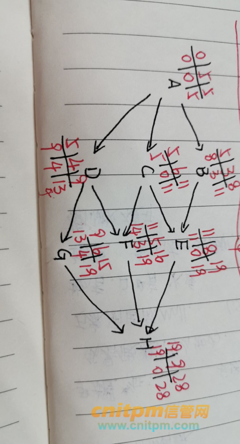 先顺着推,把最早开始时间,工期,最早完成时间算出来,再逆着推,最晚完成时间和自由时间